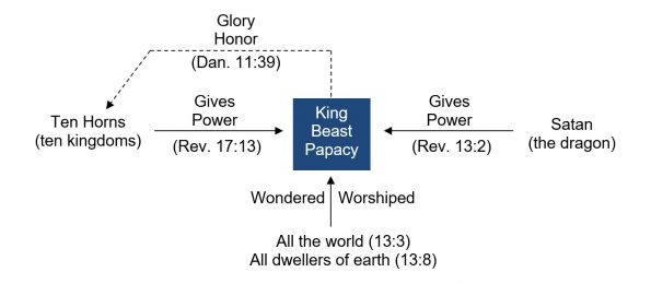 The imagery is stunning. “He” – the king – the papacy – apparently will now have unlimited power to designate who rules over these ten divisions of the world (the ten horns on the beast). The decision of who rules will be related to the support and power they arranged for him to have (with Satan’s direct intervention). Then – an issue that can only captivate our imagination: